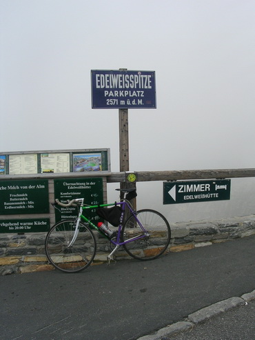 Drugi dziyn my szli zagrac golfa a tyn trzeci żech se rozhodnył, ze zajadym na Edelweisspitze (2571 m). Jechoł żech na silniczaku a był o docela maras. Serpetyny, przewyszyni 1800 m. Prawie na tej trasie żech se rozodnył, ze jak se wrócym do dómu, tak zóndym za Pawlym Mikuszym a niechóm se wzadku wymiynic sedmikoleczko na cosi lechciejszego. No nic, makoł żecha podziwioł okolice. Mówili mi w penzionu, że to je nejwyższe miejsce kaj se do zajechać po ceście.